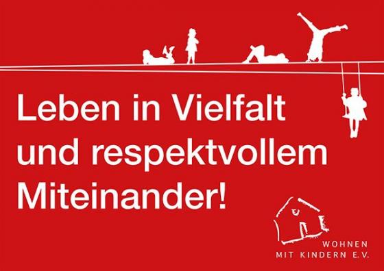 Der Verein Wohnen mit Kindern zeigt Flagge - wir setzen uns für gemeinschaftliche orientiertes Leben in Vielfalt und respektvollem Miteinander ein - hier in Düsseldorf!